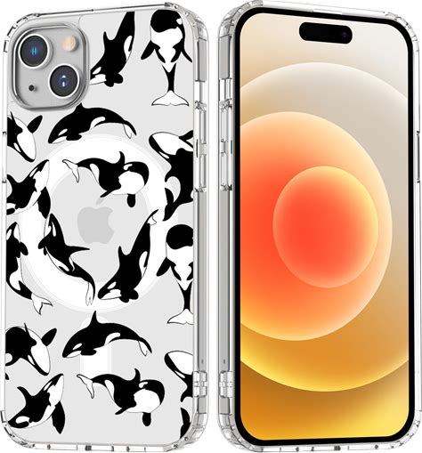 HQKALO Cute Killer Whale Magnetic Case For iPhone 14 Pro Max With Magsafe Wireless Charging Clear Art Animal Painting Girls Woman Soft Slim TPU