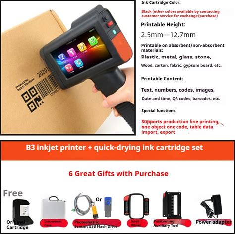 12.7/25.4mm Handheld Inkjet Printer Gun QR Barcode Batch Date Number Logo Expiry Date Coding Machine