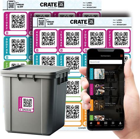 Crate ID QR Code Smart Storage Labels For Organizing Storage Bin & Totes | Premium Color QR Code Stickers | Track And Search Inventory With Free App |